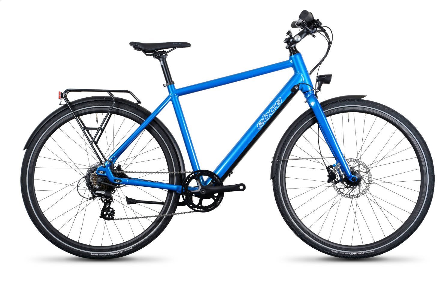 Suitable for comfortable and stylish travel around the city and the countryside. The perfect bike for leisure and commuting. The Urban 2 was created with affordability in mind, yet it still has a ton of features that are available on more expensive bikes. The Urban 2R uses a Roadster alloy frame for strength and stability, but only weighing 20 kg. The first step is an integrated battery for a simple, classic appearance. Power assistance from the Bafang H300 rear motor, which generates 32 nm of torque and is supported by an LG cell lithium 360wh battery, completes the picture. Shimano 7-speed gearbox, Clarkes Hydraulic disc brakes, and Continental 42mm tires for a smooth ride together provide exceptional stopping power, improving control and safety while riding. Along with front and rear lights, a sturdy rear luggage rack is standard. Ergon grips and an Ergon Comfort Max saddle are also included. Picking an EBCO will guarantee a fun trip whether you are traveling to work or visiting the countryside.
